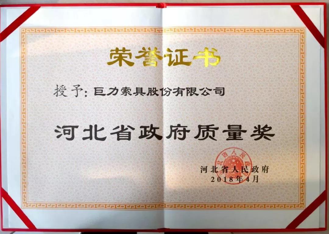巨力索具榮獲河北省政府質(zhì)量獎——再次證明實力